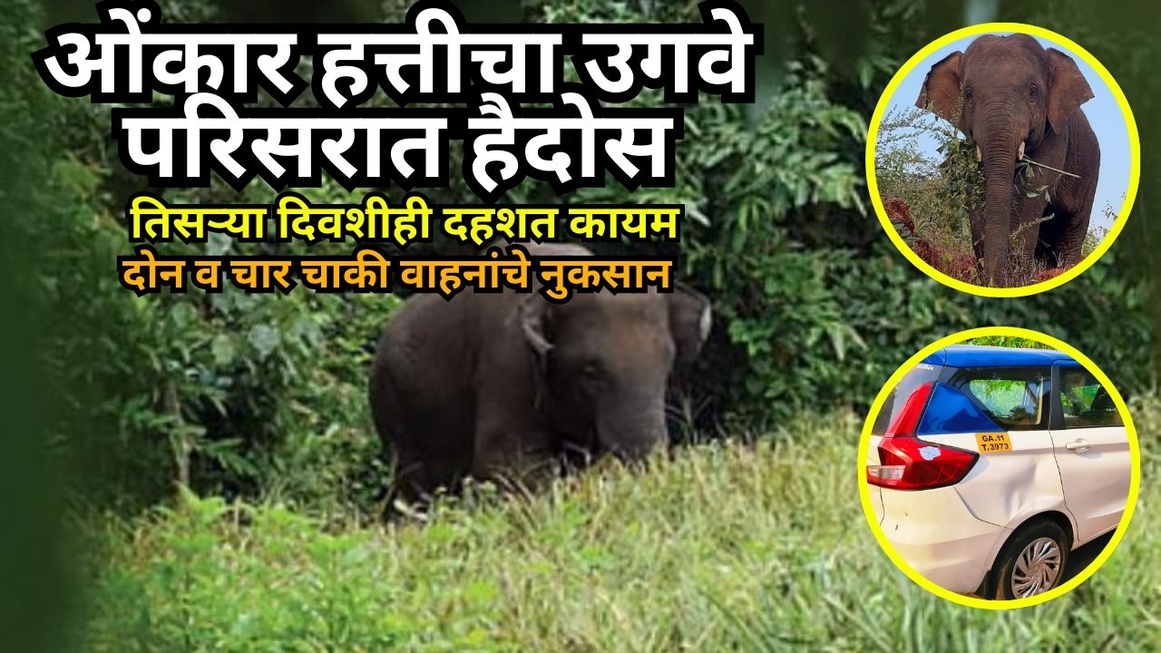 कवाथे केळीबरोबरच दोन व चार चाकी वाहनांचे नुकसान ओंकार हत्तीने तिसऱ्या दिवशी उगवे परिसरात हैदोस घातला कवाथे केळीसह अनेक दोन आणि चार चाकी वाहनांचे मोठ्या प्रमाणात नुकसान झाल्याची माहिती समोर येत आहे