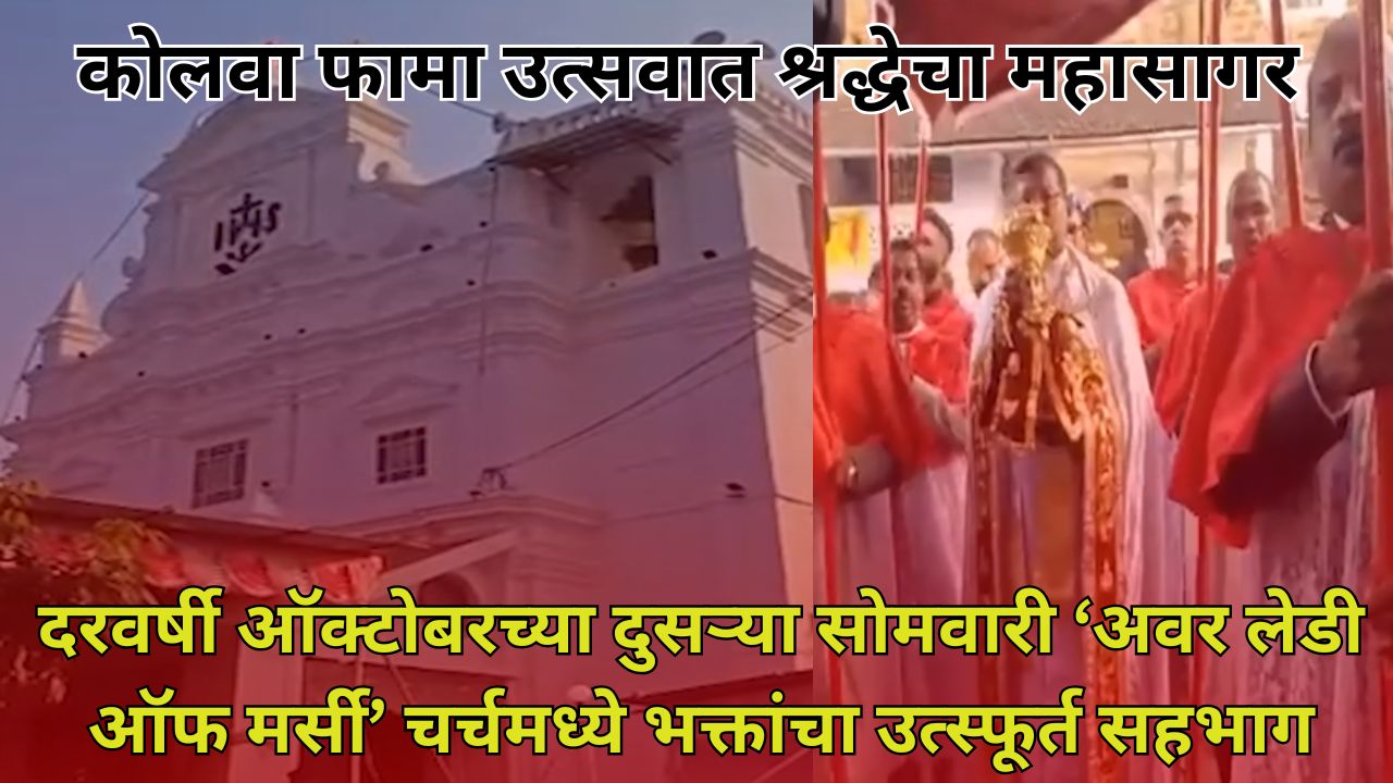दरवर्षी ऑक्टोबरच्या दुसऱ्या सोमवारी ‘अवर लेडी ऑफ मर्सी’ चर्चमध्ये भक्तांचा उत्स्फूर्त सहभाग दरवर्षी ऑक्टोबर महिन्याच्या दुसऱ्या सोमवारी कोलवा येथील ‘अवर लेडी ऑफ मर्सी’ चर्चमध्ये पारंपरिक फामा उत्सव मोठ्या भक्तिभावाने साजरा केला जातो. या दिवशी गोवा तसेच बाहेरील भागांतून हजारो भाविक कोलव्यात दाखल होऊन मिनिनो जीजसच्या दर्शनासाठी गर्दी करतात. श्रद्धा, भक्ती आणि सामाजिक ऐक्याचे प्रतीक असलेला हा उत्सव कोलव्याच्या धार्मिक आणि सांस्कृतिक परंपरेचा अविभाज्य भाग मानला जातो.