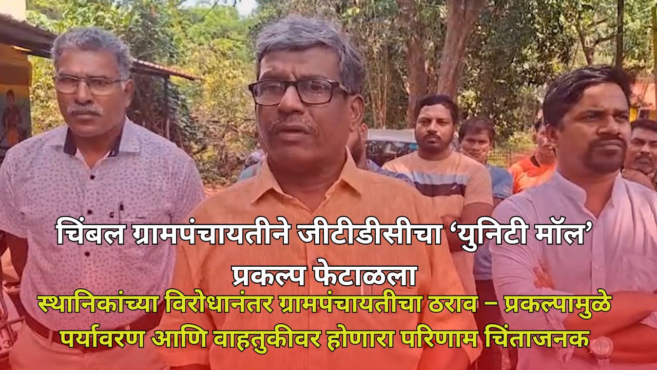 स्थानिकांच्या विरोधानंतर ग्रामपंचायतीचा ठराव – प्रकल्पामुळे पर्यावरण आणि वाहतुकीवर होणारा परिणाम चिंताजनक चिंबल ग्रामपंचायतीने गोवा पर्यटन विकास महामंडळाचा प्रस्तावित ‘युनिटी मॉल’ प्रकल्प बहुमताने फेटाळण्याचा निर्णय घेतला आहे. स्थानिक नागरिकांनी या प्रकल्पाला तीव्र विरोध दर्शवित, तो परिसराच्या पर्यावरणीय समतोल आणि वाहतूक व्यवस्थेवर विपरीत परिणाम करेल, अशी चिंता व्यक्त केली होती. ग्रामपंचायतीने या सर्व बाबींचा विचार करून प्रकल्पास नकार दिला.
