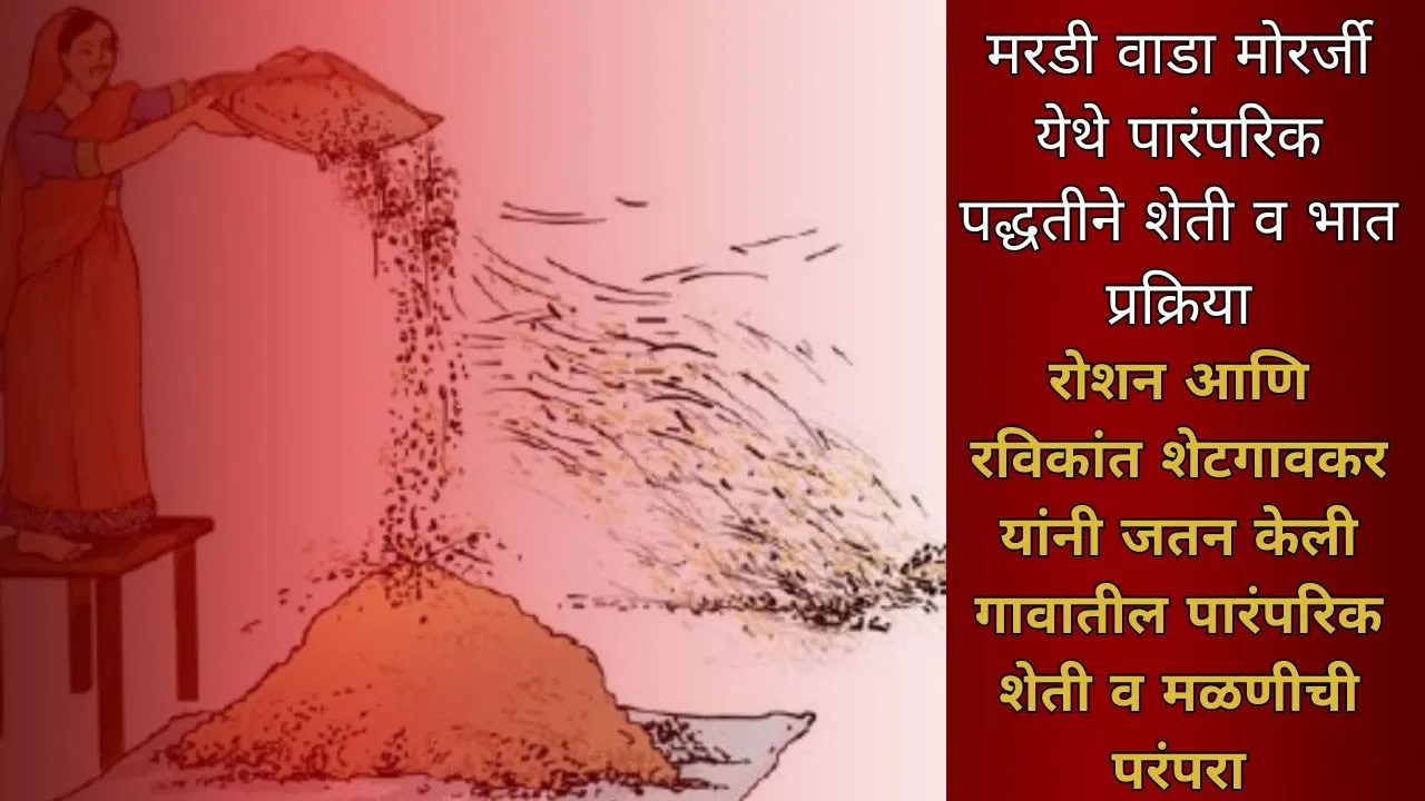 रोशन आणि रविकांत शेटगावकर यांनी जतन केली गावातील पारंपरिक शेती व मळणीची परंपरा मरडी वाडा मोरर्जी येथील रोशन आणि रविकांत शेटगावकर हे शेतकरी परंपरेनुसार शेतीची मळणी कापणी तसेच भात वाऱ्याची पारंपरिक पद्धत जपत आहेत. या कष्टाने आणि परंपरेने गावातील लोकसंस्कृतीत सजीवपणा टिकवून ठेवला जातो.