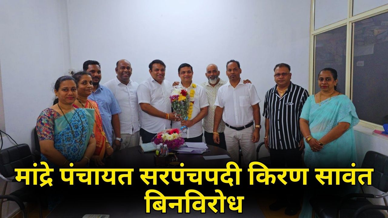 रॉबर्ट फर्नांडिस यांचा राजीनामा; निवडणुकीत एकमेव अर्ज आल्याने सावंत यांची निवड Mandrem ग्रामपंचायतीच्या सरपंचपदी किरण सावंत यांची बिनविरोध निवड करण्यात आली आहे. अलिखित करारानुसार विद्यमान सरपंच रॉबर्ट फर्नांडिस यांनी आपल्या पदाचा राजीनामा दिल्यानंतर १३ रोजी सरपंच पदासाठी निवडणूक प्रक्रिया पार पडली. या निवडणुकीत किरण सावंत यांचा एकमेव अर्ज प्राप्त झाल्याने त्यांची बिनविरोध निवड जाहीर करण्यात आली.यावेळी नवनिर्वाचित जिल्हा पंचायत सदस्य Tara Hatfadkar यांनीही उपस्थित राहून किरण सावंत यांचे अभिनंदन केले. स्थानिक पदाधिकारी व ग्रामस्थांनीही नव्या सरपंचांना शुभेच्छा देत गावाच्या विकासासाठी सहकार्य करण्याची अपेक्षा व्यक्त केली.