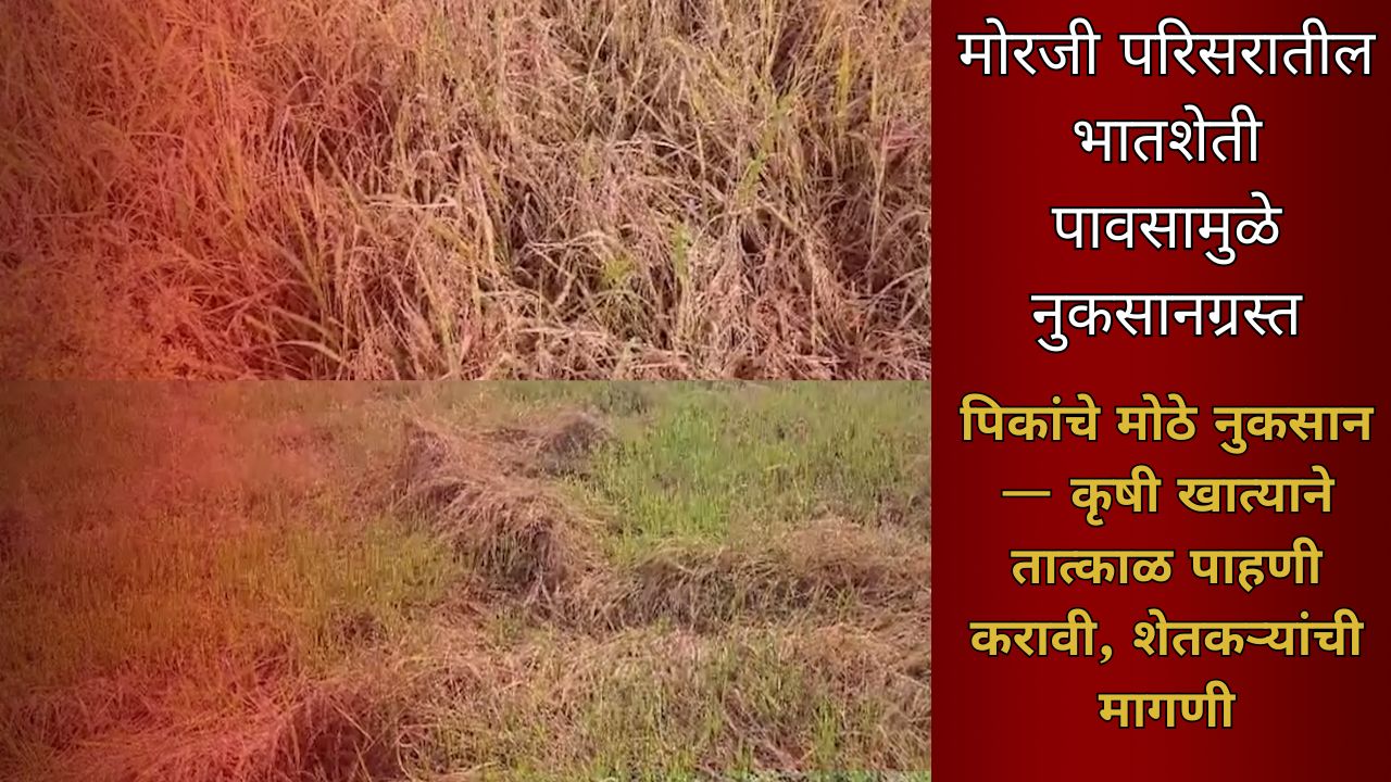 पिकांचे मोठे नुकसान — कृषी खात्याने तात्काळ पाहणी करावी, शेतकऱ्यांची मागणी मोरजी पंचायत क्षेत्रातील अनेक ठिकाणी झालेल्या सततच्या पावसामुळे भातशेतीचे मोठ्या प्रमाणात नुकसान झाले आहे. पिकांमध्ये पाणी साचल्याने शेतीची स्थिती गंभीर झाली आहे. या पार्श्वभूमीवर शेतकऱ्यांनी कृषी खात्याने तातडीने पाहणी करून नुकसानग्रस्त शेतकऱ्यांना योग्य नुकसानभरपाई द्यावी, अशी मागणी केली आहे.