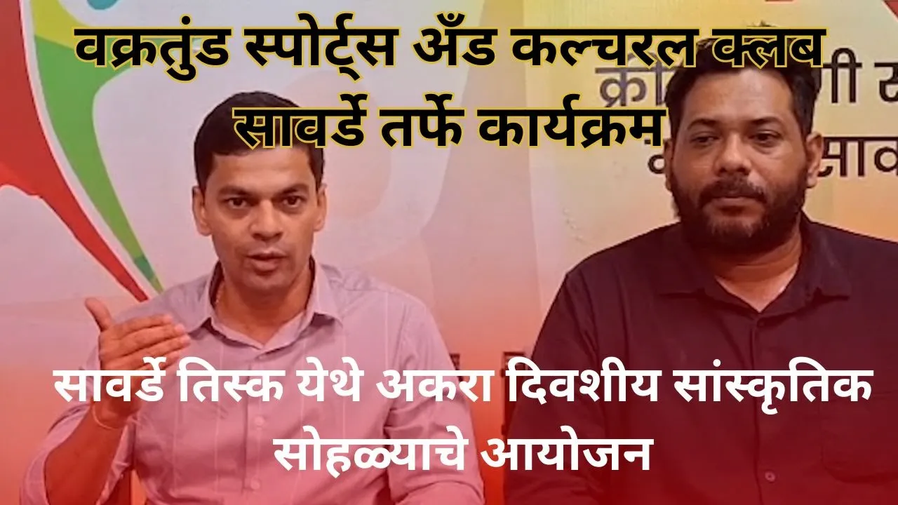 सावर्डे तिस्क येथे अकरा दिवशीय सांस्कृतिक सोहळ्याचे आयोजन सावर्डे तिस्क येथे वक्रतुंड स्पोर्ट्स अँड कल्चरल क्लब सावर्डे यांच्या वतीने अकरा दिवशीय भव्य सांस्कृतिक कार्यक्रमाचे आयोजन करण्यात आले आहे. या कार्यक्रमाबाबतची सविस्तर माहिती क्लबचे प्रतिनिधी संकेत आर्सेकर यांनी पत्रकार परिषदेत दिली. त्यांनी सांगितले की या कार्यक्रमात विविध सांस्कृतिक, क्रीडा आणि सामाजिक उपक्रमांचे आयोजन करण्यात येणार असून, स्थानिक कलाकारांना प्रोत्साहन देणे हा मुख्य उद्देश आहे.