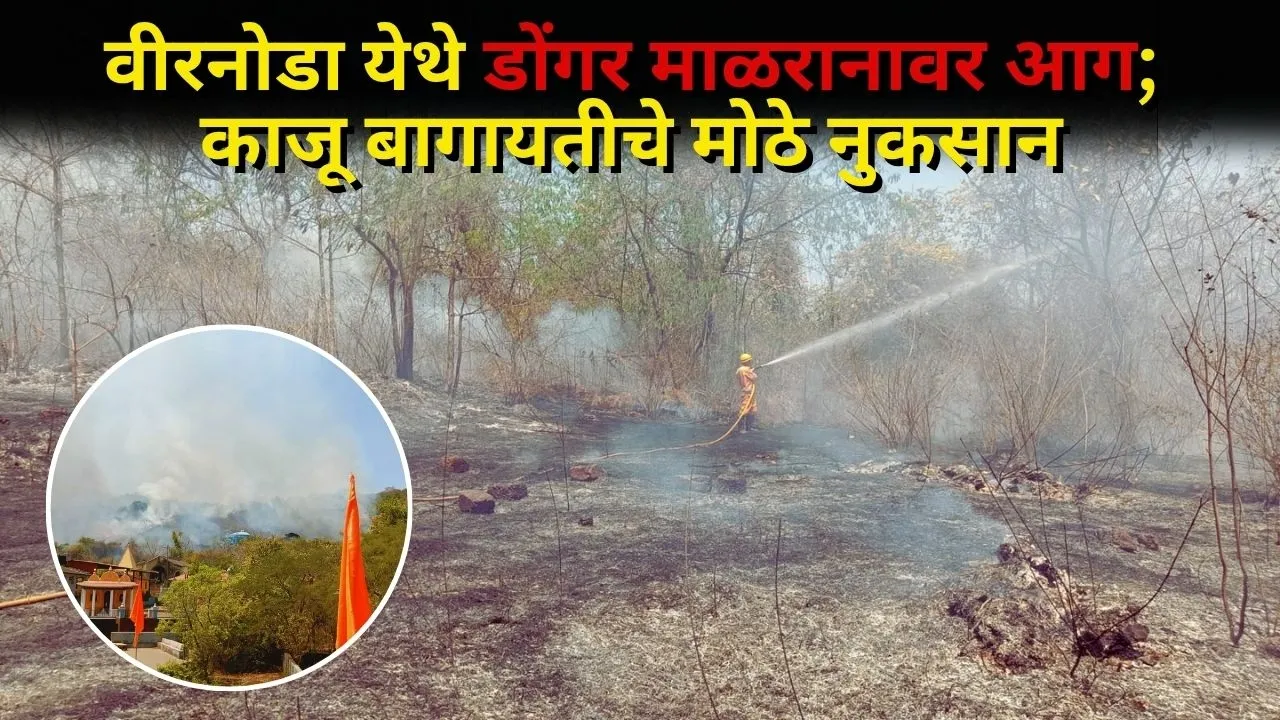 श्री रवळनाथ मंदिराच्या मागील भागात घटना; अग्निशामन दल आग विझवण्यात व्यस्त वीरनोडा येथील Shri Ravalnath मंदिराच्या मागील डोंगर माळरानावर आग लागल्याची घटना घडली असून यात मोठ्या प्रमाणात काजू बागायतीचे नुकसान झाले आहे. आग वेगाने पसरल्याने परिसरात काही काळ भीतीचे वातावरण निर्माण झाले. घटनेची माहिती मिळताच अग्निशामन दलाचे जवान घटनास्थळी दाखल होऊन आग विझवण्याचे शर्तीचे प्रयत्न केले स्थानिक नागरिकही मदतकार्यामध्ये सहभागी झाले होते