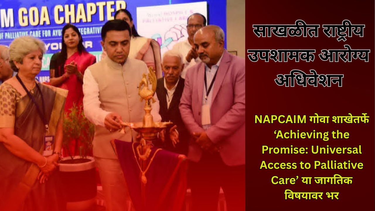 NAPCAIM गोवा शाखेतर्फे ‘Achieving the Promise: Universal Access to Palliative Care’ या जागतिक विषयावर भर नॅशनल असोसिएशन ऑफ पॅलिएटिव्ह केअर फॉर आयुष अँड इंटिग्रेटिव्ह मेडिसिन च्या गोवा शाखेतर्फे जागतिक हॉस्पिस आणि उपशामक आरोग्य दिनानिमित्त राष्ट्रीय उपशामक आरोग्य अधिवेशनाचे आयोजन करण्यात आले आहे. हे अधिवेशन सांखळी येथील साई नर्सिंग इन्स्टिट्यूटमध्ये मुख्यमंत्र्याच्या उपस्थितीत सुरु झाले या वर्षीच्या ‘Achieving the Promise: Universal Access to Palliative Care’ या जागतिक विषयावर आधारित या अधिवेशनाचा उद्देश उपशामक आरोग्याबाबत जनजागृती वाढवणे, ज्ञानाची देवाणघेवाण करणे आणि राज्य व राष्ट्रीय स्तरावर आरोग्य सेवांमध्ये एकात्मिक दृष्टिकोन विकसित करणे हा आहे. या अधिवेशनात आयुष पद्धती यात आयुर्वेद, योग, निसर्गोपचार, युनानी, सिद्ध, आणि होमिओपथी यांचा आधुनिक वैद्यकासोबत समन्वय साधण्यावर चर्चा होणार आहे.