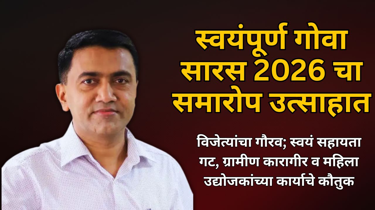 मुख्यमंत्री डॉ. प्रमोद सावंत यांच्या हस्ते विजेत्यांचा गौरव; स्वयं सहायता गट, ग्रामीण कारागीर व महिला उद्योजकांच्या कार्याचे कौतुक स्वयंपूर्ण गोवा सारस 2026 या ११ दिवस चाललेल्या भव्य प्रदर्शनाचा समारोप सोहळा उत्साहात पार पडला. या कार्यक्रमाला मुख्यमंत्री डॉ. प्रमोद सावंत उपस्थित राहून विजेत्यांना पारितोषिके प्रदान केली तसेच विविध स्वयं सहायता गट, ग्रामीण कारागीर, महिला उद्योजक आणि स्थानिक उद्योजकांचा सत्कार करण्यात आला. या प्रदर्शनात जीआय टॅग असलेली गोमंतकीय उत्पादने, हस्तकला, हातमाग, सेंद्रिय उत्पादने तसेच पारंपरिक खाद्यपदार्थांचे आकर्षक प्रदर्शन करण्यात आले होते.यावेळी ‘RE 4 Gender Idea Competition’ मधील विजेत्यांचाही सत्कार करण्यात आला. महिला नेतृत्वाखालील नूतनीकरणीय ऊर्जा क्षेत्रातील नाविन्यपूर्ण कल्पनांचे मुख्यमंत्री यांनी विशेष कौतुक केले. ग्रामीण विकास विभाग, जीएसआरएलएम, सहभागी स्वयं सहायता गट आणि सर्व संबंधित घटकांच्या प्रयत्नांमुळे हा उपक्रम यशस्वी ठरल्याचे मुख्यमंत्री यांनी सांगितले.