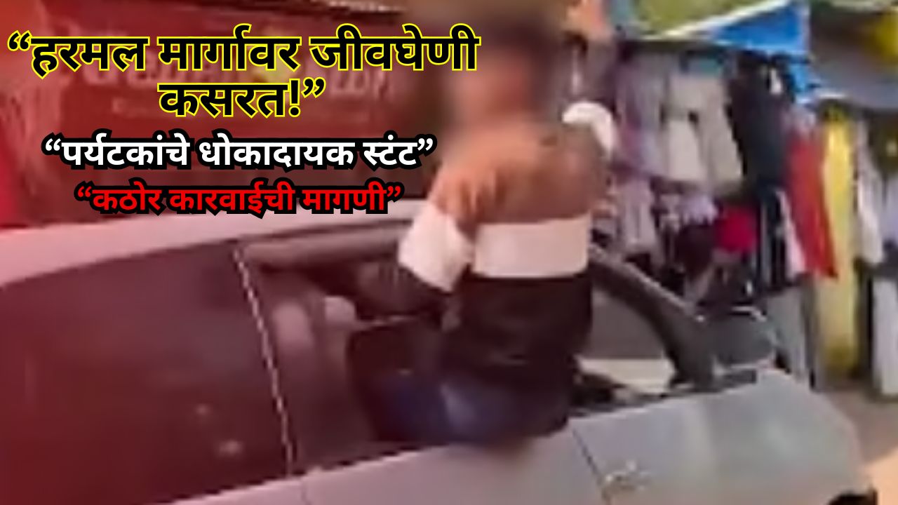 वाहनांमधून धोकादायक स्टंट करताना देशी पर्यटक; अपघाताचा धोका वाढला आरंबोल बीचकडे जाणाऱ्या रस्त्यावर देशी पर्यटकांकडून वाहनांमधून धोकादायक स्टंट केल्याचे प्रकार समोर आले आहेत. चालत्या वाहनातून बाहेर लटकणे, उभे राहणे आणि कसरती करताना दिसलेल्या या पर्यटकांमुळे परिसरात अपघाताचा धोका वाढला असून स्थानिक नागरिक आणि वाहनचालकांमध्ये नाराजी व्यक्त केली जात आहे. पोलिसांनी अशा धोकादायक कृतींवर कठोर कारवाई करण्याची मागणी होत आहे.