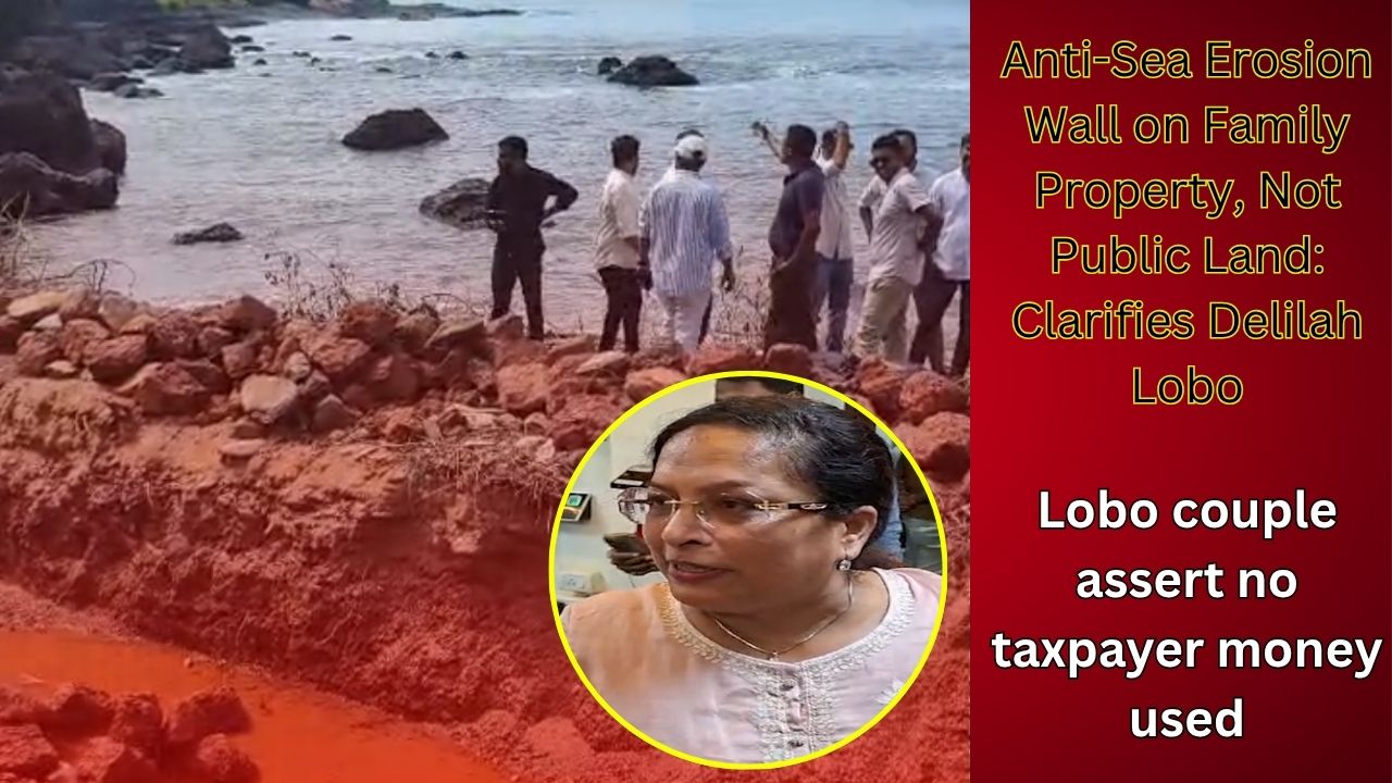 Lobo couple assert no taxpayer money used MLA Delilah Lobo, have clarified that the ongoing anti-sea erosion wall construction at Anjuna is being built on their family property and not on public land. Addressing allegations of illegality, Michael Lobo stated that no taxpayer money is involved, adding, “The entire cost of the project is being borne by us.” She further explained that the Water Resources Department is merely executing the work under a technically approved anti-erosion project, aimed at protecting the property from sea damage.