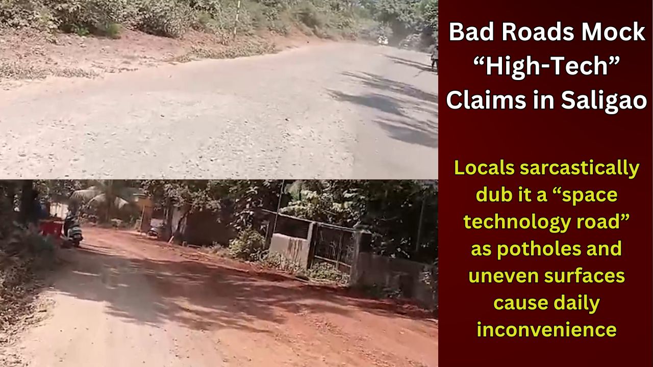 Locals sarcastically dub it a “space technology road” as potholes and uneven surfaces cause daily inconvenience Residents of Saligao have expressed frustration over the poor condition of local roads, sarcastically referring to them as “high-tech, space technology roads.” Despite repeated assurances of quality infrastructure, the stretch remains riddled with potholes and uneven patches, making commuting difficult. Locals have urged authorities to take immediate action and ensure proper road repairs before the situation worsens.