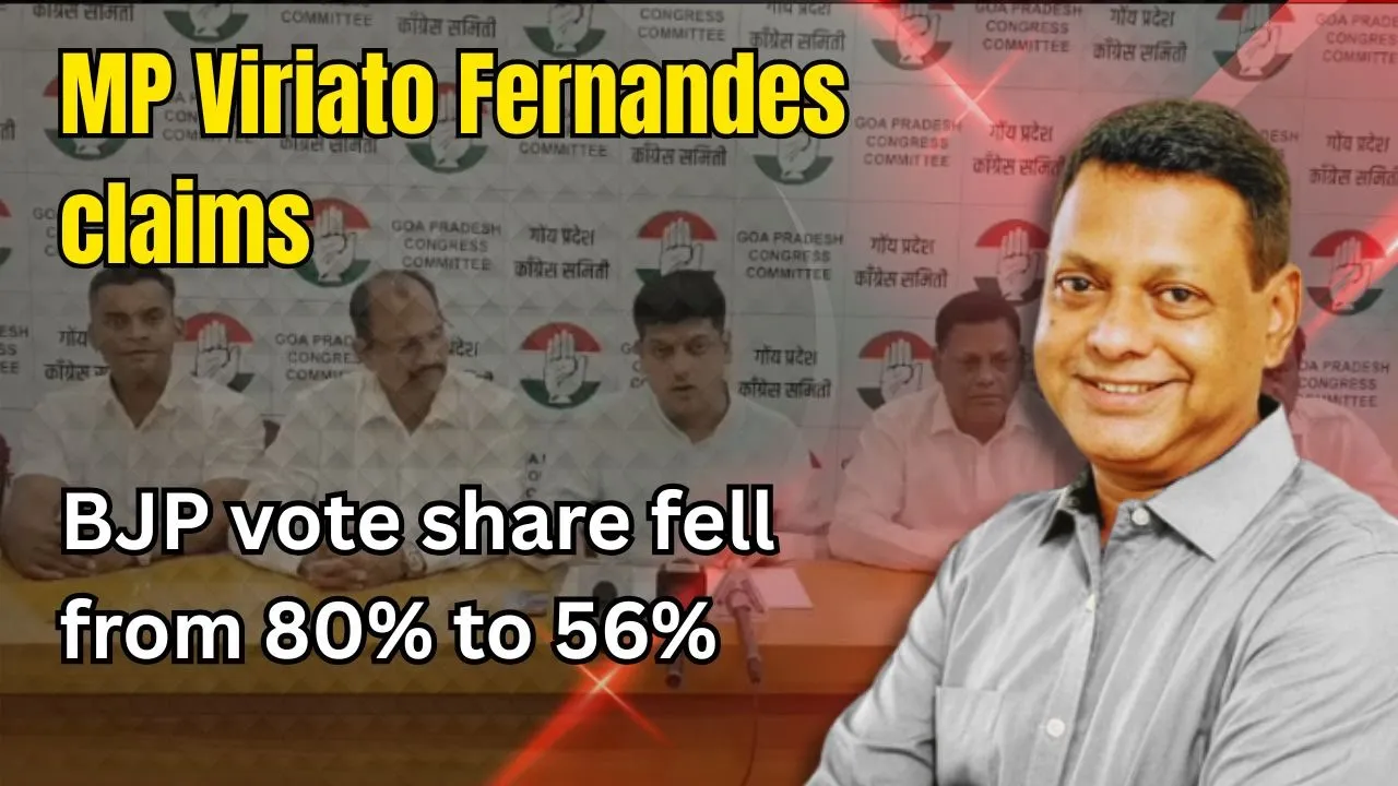 MP Viriato Fernandes claims BJP vote share fell from 80% to 56% Reacting to the Zilla Panchayat election results, Congress MP Captain Viriato Fernandes said the BJP won 29 out of 50 seats but witnessed a significant drop in its vote share, which he claimed declined from 80 per cent to 56 per cent.