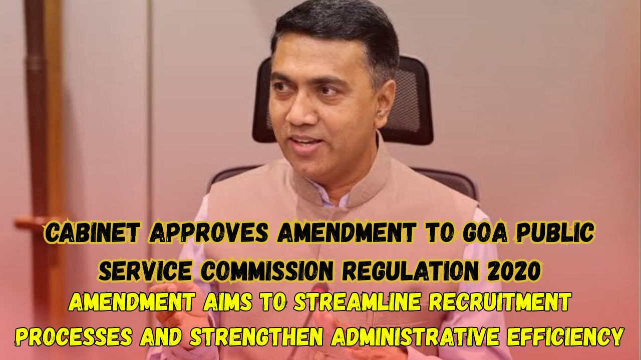 Amendment aims to streamline recruitment processes and strengthen administrative efficiency Chief Minister Dr. Pramod Sawant announced that the Goa Cabinet has approved a proposal to amend the Goa Public Service Commission Regulation 2020. The amendment seeks to enhance transparency, simplify recruitment procedures, and improve administrative efficiency within the Commission, ensuring a more effective and merit-based selection process for government posts in the state.