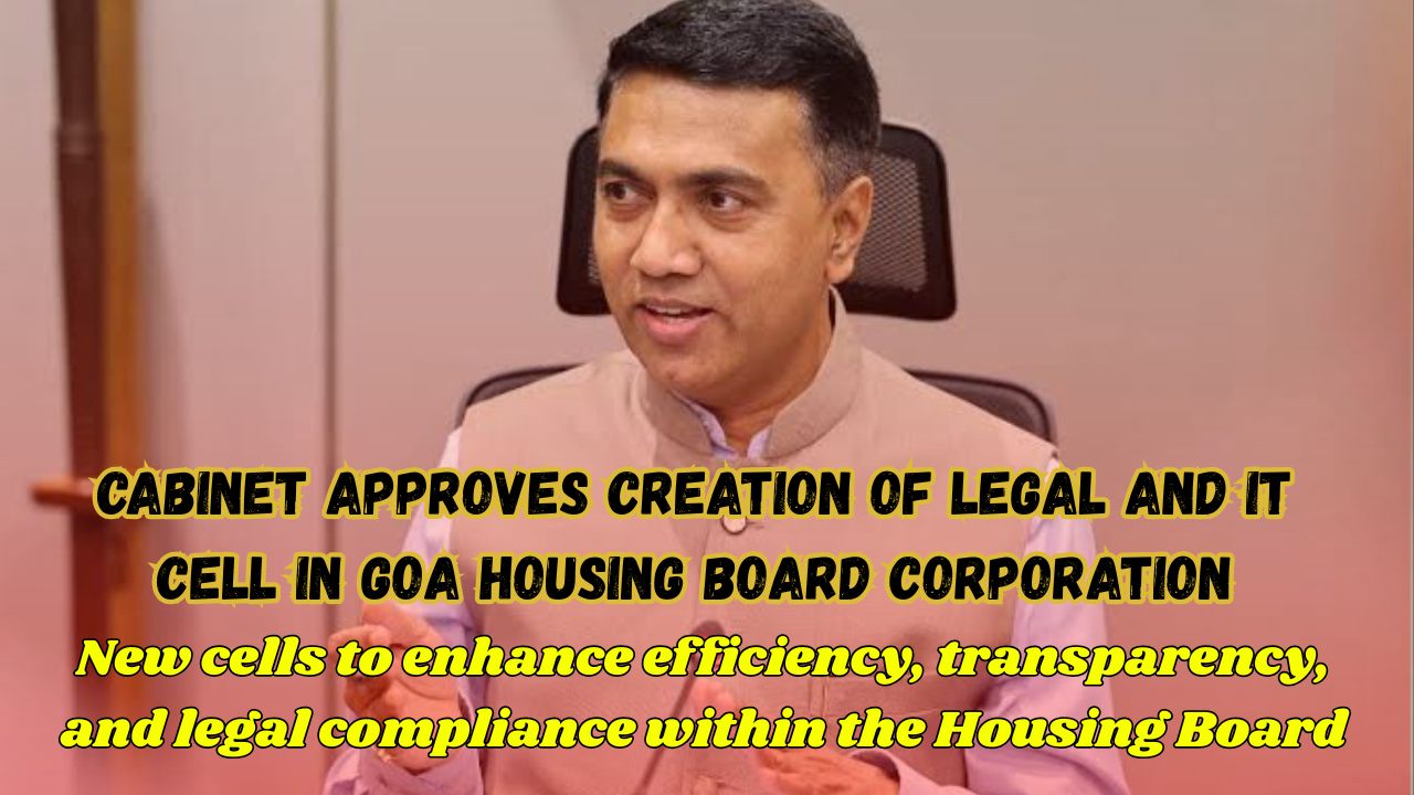 New cells to enhance efficiency, transparency, and legal compliance within the Housing Board Chief Minister Dr. Pramod Sawant announced that the Goa Cabinet has approved the establishment of a Legal and IT Cell within the Goa Housing Board Corporation.The move aims to strengthen administrative efficiency, ensure better legal oversight, and promote technology-driven transparency in housing projects and operations, aligning with the government’s vision for good governance and digital transformation.