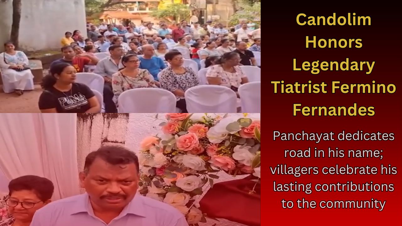 Panchayat dedicates road in his name; villagers celebrate his lasting contributions to the community The Candolim Panchayat paid a heartfelt tribute to renowned tiatrist Fermino Fernandes by dedicating a road in his name. Villagers gathered to celebrate the recognition of Fernandes’ immense contribution to Konkani theatre and the local community. The event highlighted his enduring legacy and the pride his hometown continues to hold for his artistic and social impact.