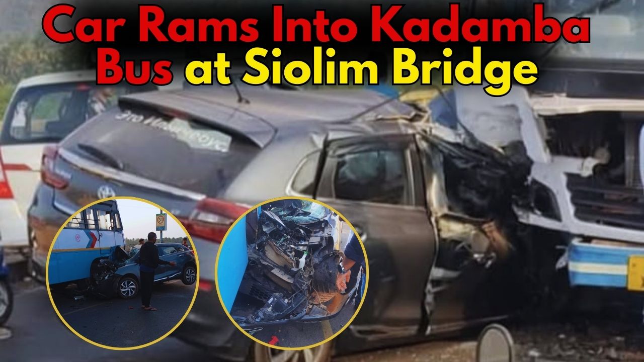 Car Rams Into Kadamba Bus at Siolim Bridge