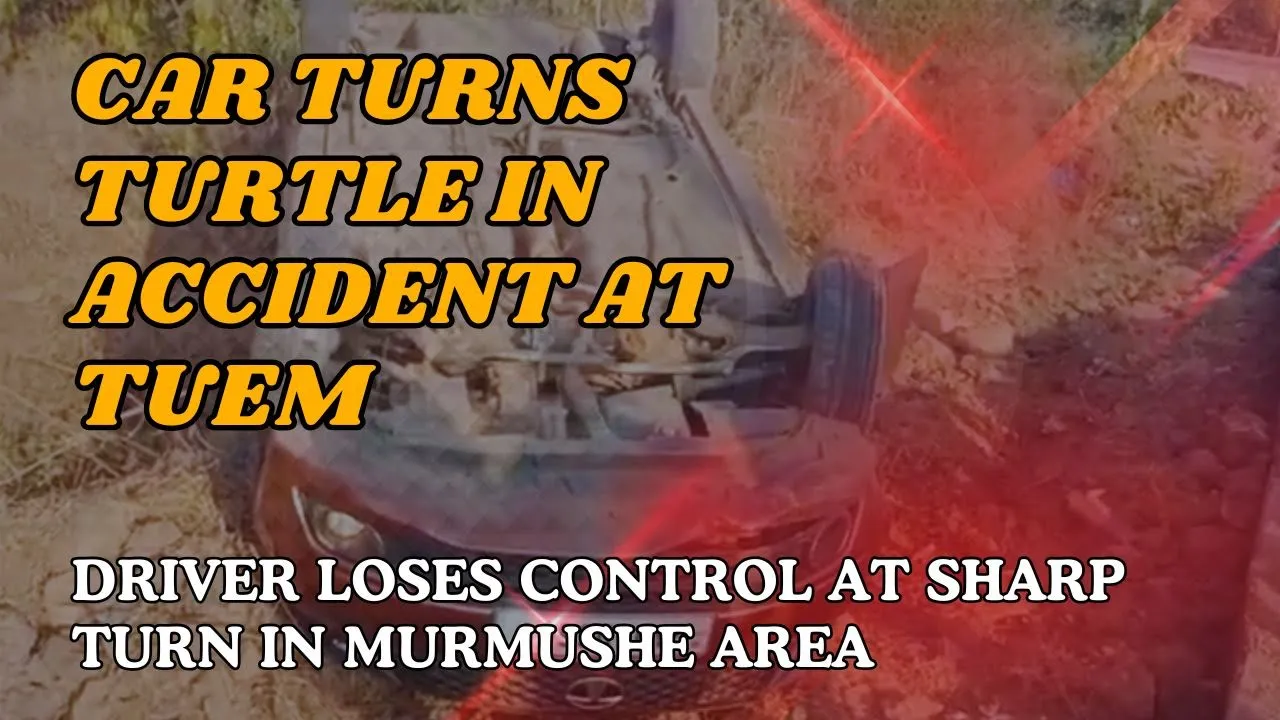 Car Turns Turtle in Accident at Tuem