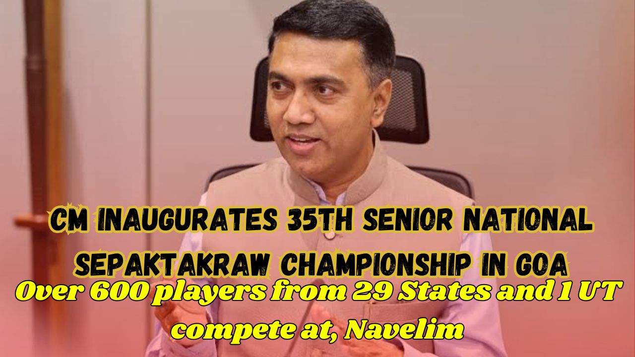 Over 600 players from 29 States and 1 UT compete at, Navelim Chief Minister Dr. Pramod Sawant inaugurated the 35th Senior National Sepaktakraw Championship 2025–26 at the Manohar Parrikar Indoor Stadium, NavelimWelcoming over 600 athletes from 29 States and 1 Union Territory, the Chief Minister lauded the sport’s growing popularity and praised the commitment of players and coaches. He encouraged all participants to compete with passion, discipline, and integrity, reaffirming Goa’s and India’s shared vision of becoming a global sporting powerhouse.