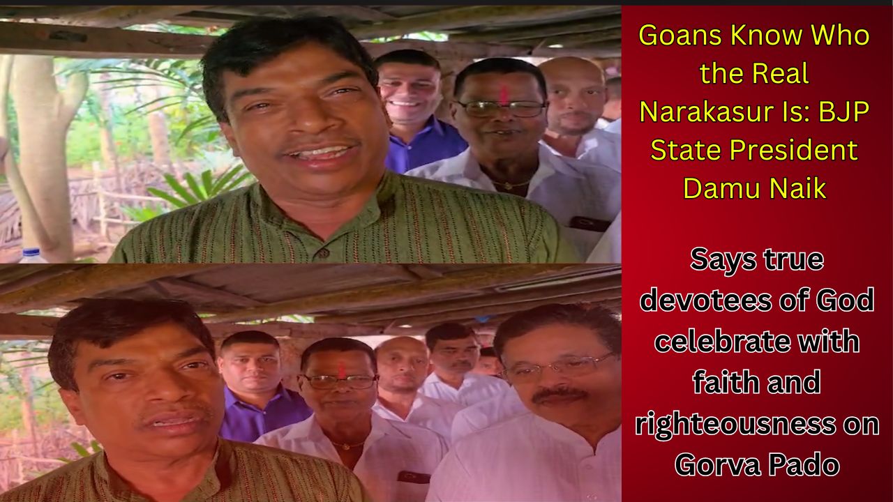 Says true devotees of God celebrate with faith and righteousness on Gorva Pado BJP State President Damu Naik remarked that the people of Goa clearly know “who is Narakasur and who are true devotees of God.” Speaking on the occasion of Gorva Pado, Naik said, “Those who are like Narakasur celebrate the night before, but the next morning belongs to us — the devotees who follow Lord Shri Krishna. Our real celebration begins with faith and devotion.”
