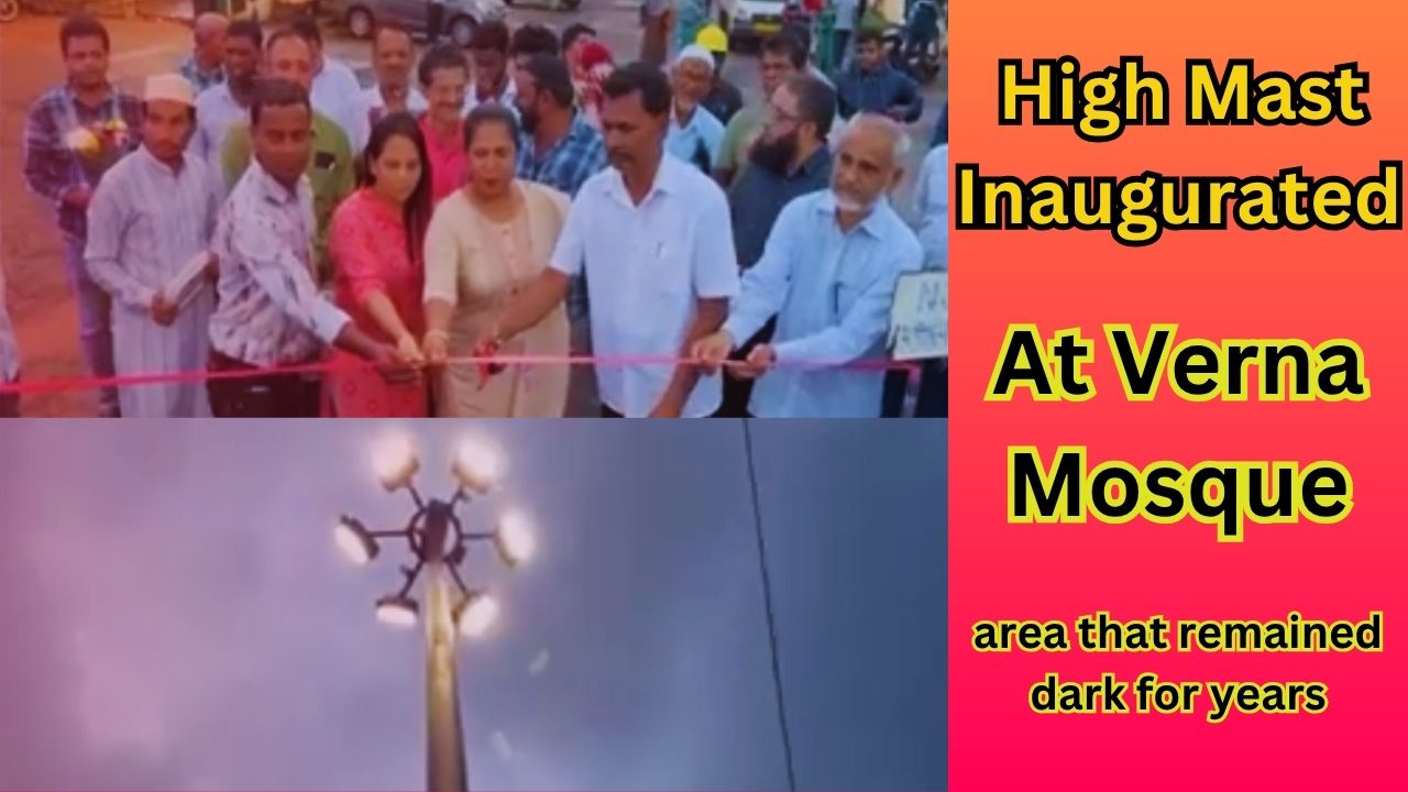 Power Minister Sudin Dhavlikar sanctioned the ₹6 lakh project A new high mast light was inaugurated at the Verna Mosque, bringing much-needed illumination to the area that remained dark for years. The initiative was undertaken following a request from the mosque committee and sanctioned by Power Minister Sudin Dhavlikar.