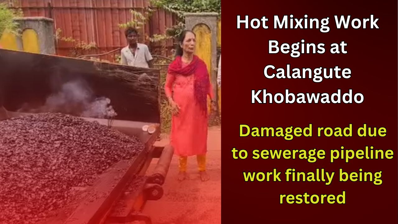 Damaged road due to sewerage pipeline work finally being restored Hot mixing work has commenced at Calangute Khobawaddo, where the road had deteriorated badly following sewerage pipeline installation. The stretch had developed large potholes, causing inconvenience to commuters. The repair work aims to restore smooth and safe travel in the area.