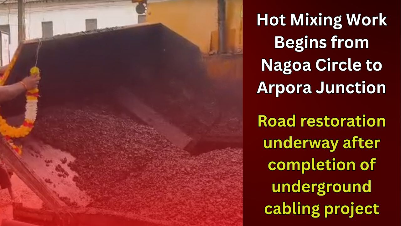 Road restoration underway after completion of underground cabling project After weeks of inconvenience caused by road digging for underground cabling work, the hot mixing process has finally begun on the stretch from Nagoa Circle to Arpora Junction. The road work aims to restore smooth connectivity for commuters and ensure better driving conditions in the area.