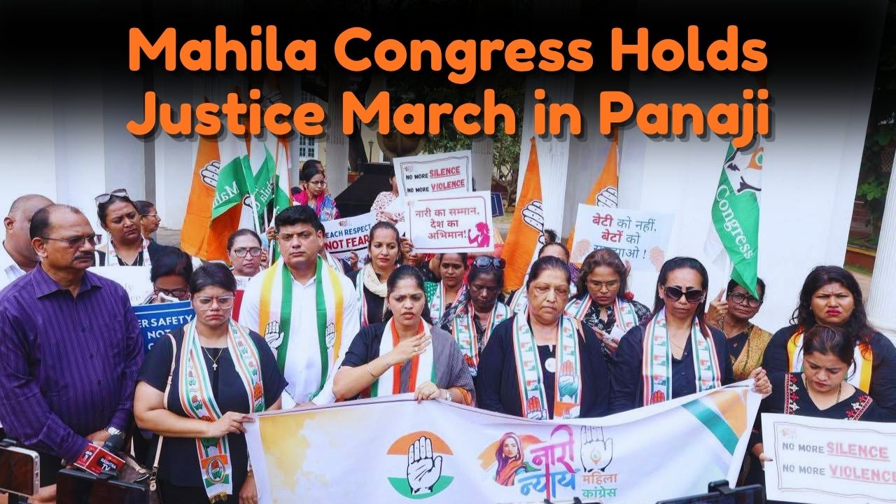 Protest against rising crimes; outrage over Curchorem sex scandal The Goa Pradesh Mahila Congress staged a Justice March in Panaji, raising strong concerns over the increasing incidents of crimes against women and minors. During the protest, leaders expressed outrage over recent cases, including the alleged Curchorem sex scandal involving a BJP councillor’s son, and demanded strict action and enhanced safety measures.