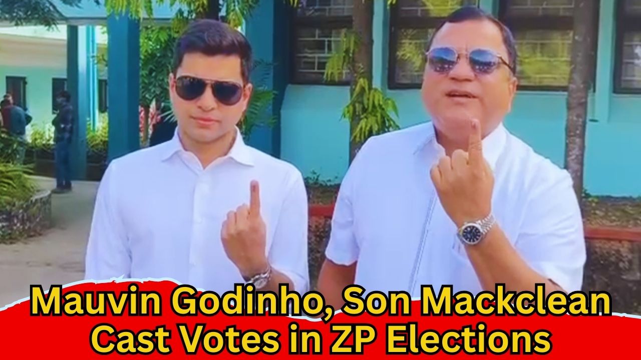 Calls Polls a “Festival of Democracy,” Predicts BJP Victory Panchayats Minister Mauvin Godinho along with his son Mackclean Godinho cast their votes for the Zilla Panchayat elections at a polling booth in Chicalim on Sunday. Speaking to the media, Godinho termed elections a “festival of democracy” and urged citizens to participate actively. He said voters would support candidates committed to development and good governance, and expressed confidence of a thumping BJP victory across Goa, reflecting the party’s work at the village and state levels.