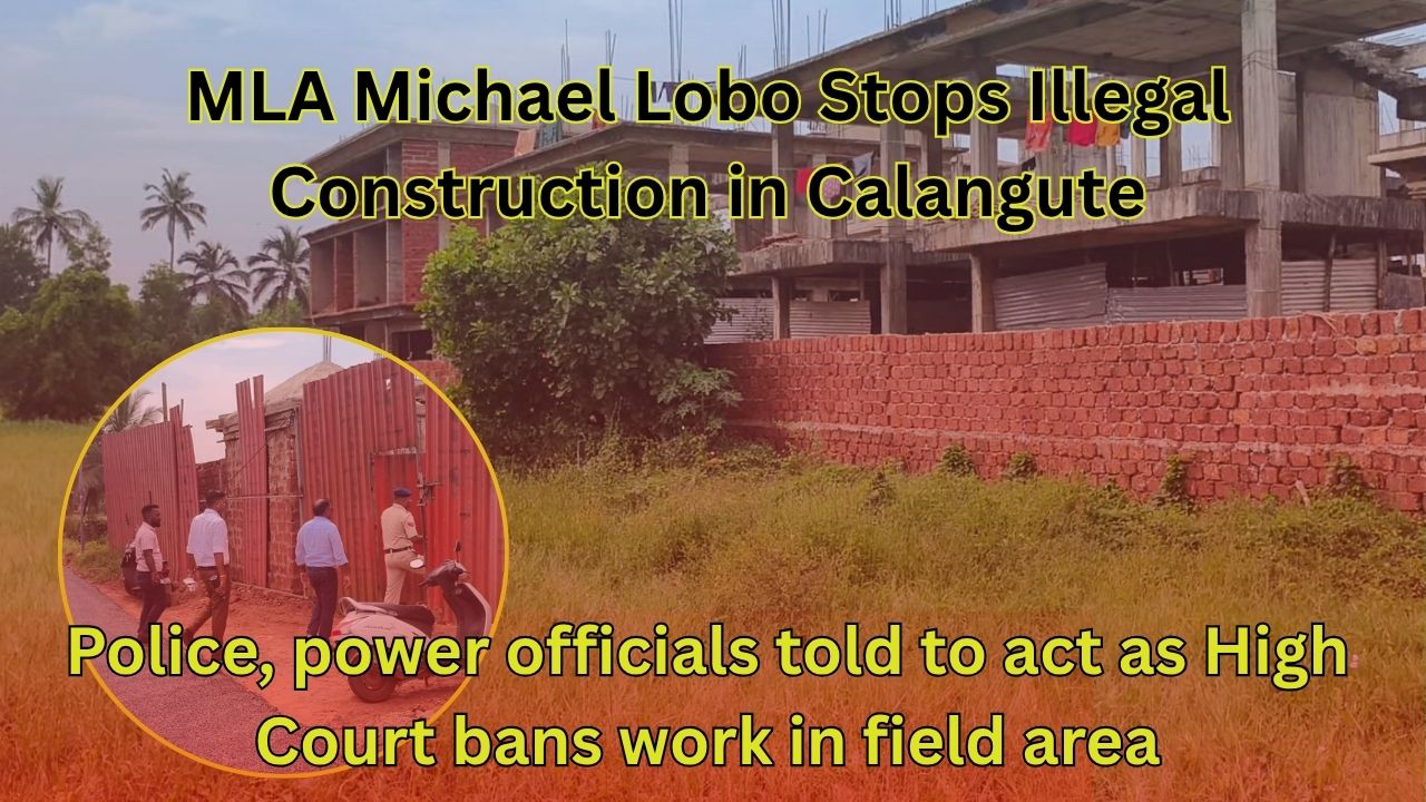 Police, power officials told to act as High Court bans work in field area Calangute MLA Michael Lobo halted illegal construction work despite a High Court ban on activity in the field area. He directed police to stop the work immediately and instructed electricity officials to disconnect the power supply until Supreme Court orders.