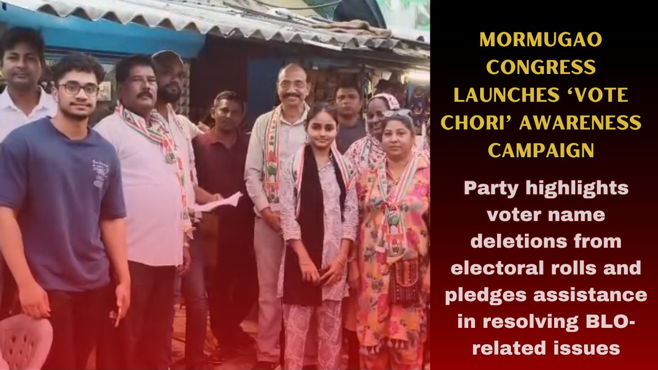 Party highlights voter name deletions from electoral rolls and pledges assistance in resolving BLO-related issues The Mormugao Congress has launched a ‘Vote Chori’ campaign to raise awareness about the alleged large-scale removal of voter names from the electoral list. Party leaders urged citizens to verify their names and assured full support in addressing related issues with Booth Level Officers, emphasizing the importance of protecting every voter’s right to participate in the upcoming elections.