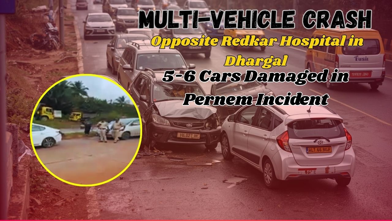5-6 Cars Damaged in Pernem Incident, No Major Injuries A multi-vehicular accident involving around 5-6 cars disrupted traffic opposite Redkar Hospital in Dhargal, Pernem,While several vehicles sustained damage, authorities confirmed no major injuries, with the site quickly cleared to restore normal flow. Local reports highlighted the swift response from officials to manage the scene.