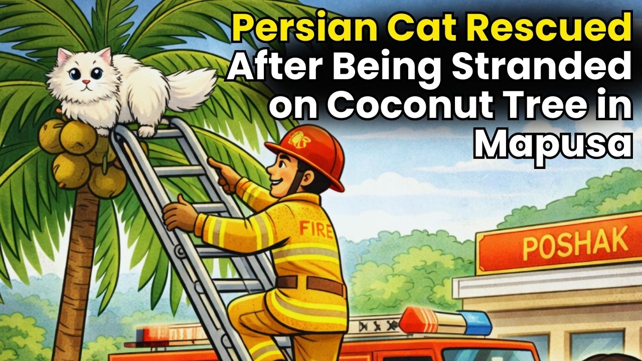 Mapusa Firefighters Carry Out Swift Rescue Operation Near Poshak Firefighters from Mapusa Fire Station successfully rescued a Persian cat that was stranded atop a coconut tree near Poshak in Mapusa. The team responded promptly to the alert and carried out a careful rescue operation, bringing the frightened pet safely back to the ground. The swift action of the firefighters was appreciated by locals and the pet’s owner.