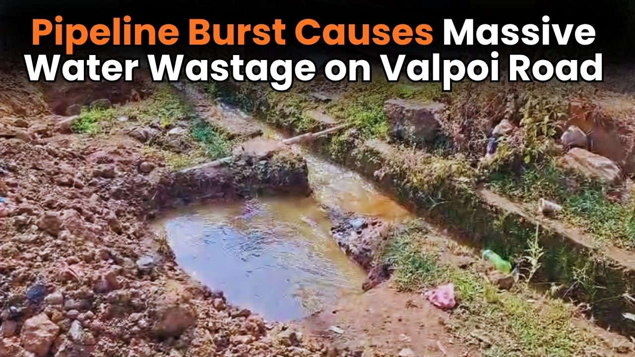 Pipeline Burst Causes Massive Water Wastage on Valpoi Road