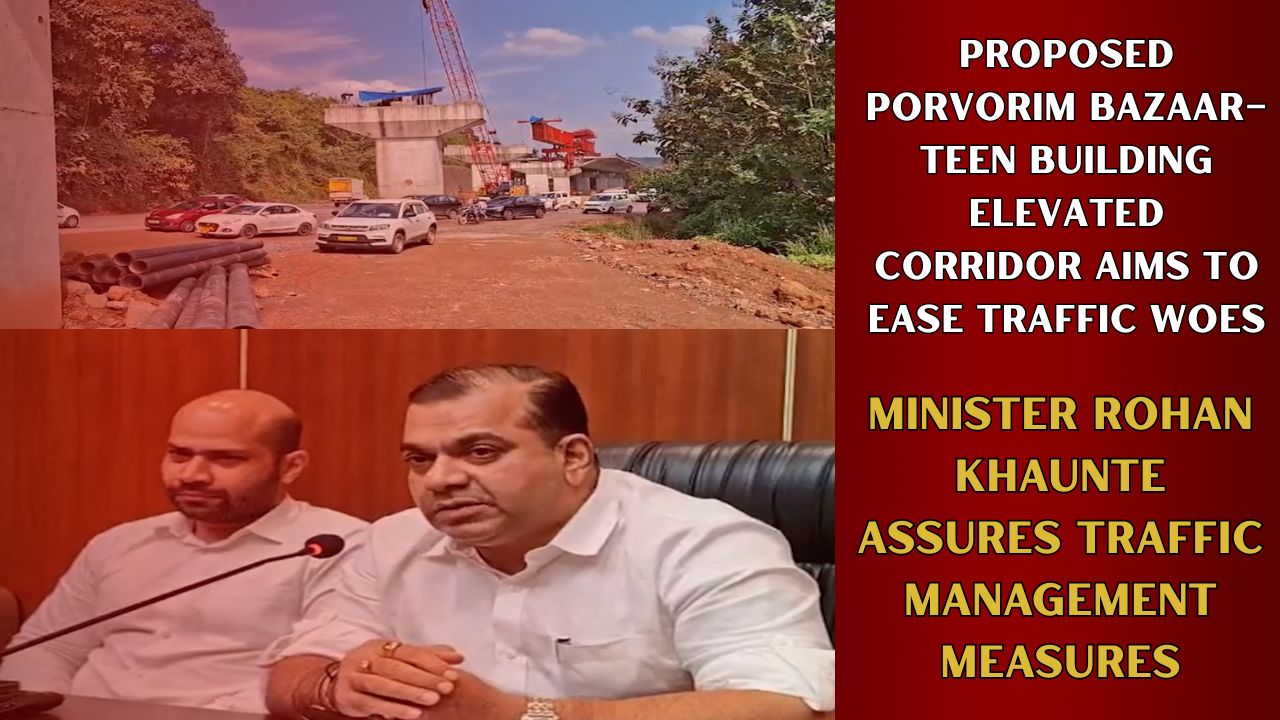 Minister Rohan Khaunte assures traffic management measures With the elevated corridor work turning Porvorim into a commuter’s nightmare, the once 30-minute Mapusa–Panjim journey now takes hours. To address this growing congestion, a new elevated corridor between Porvorim Bazaar and Teen Building has been proposed. Tourism Minister and Porvorim MLA Rohan Khaunte assured that traffic will be managed efficiently to minimize inconvenience to daily commuters during the ongoing infrastructure development.